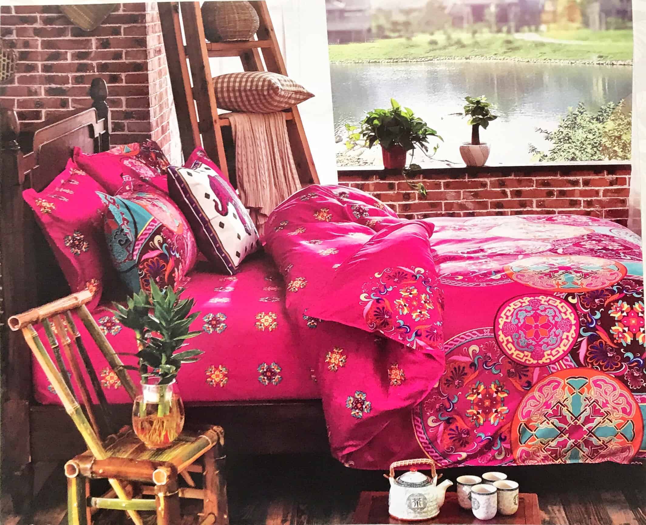 A 6-piece Bed in a Bag designed to conveniently complement each other. It comprises of-1 Double Bed Comforter, 1 Bedsheet, 2 Pillow Covers and 2 Cushion Covers.