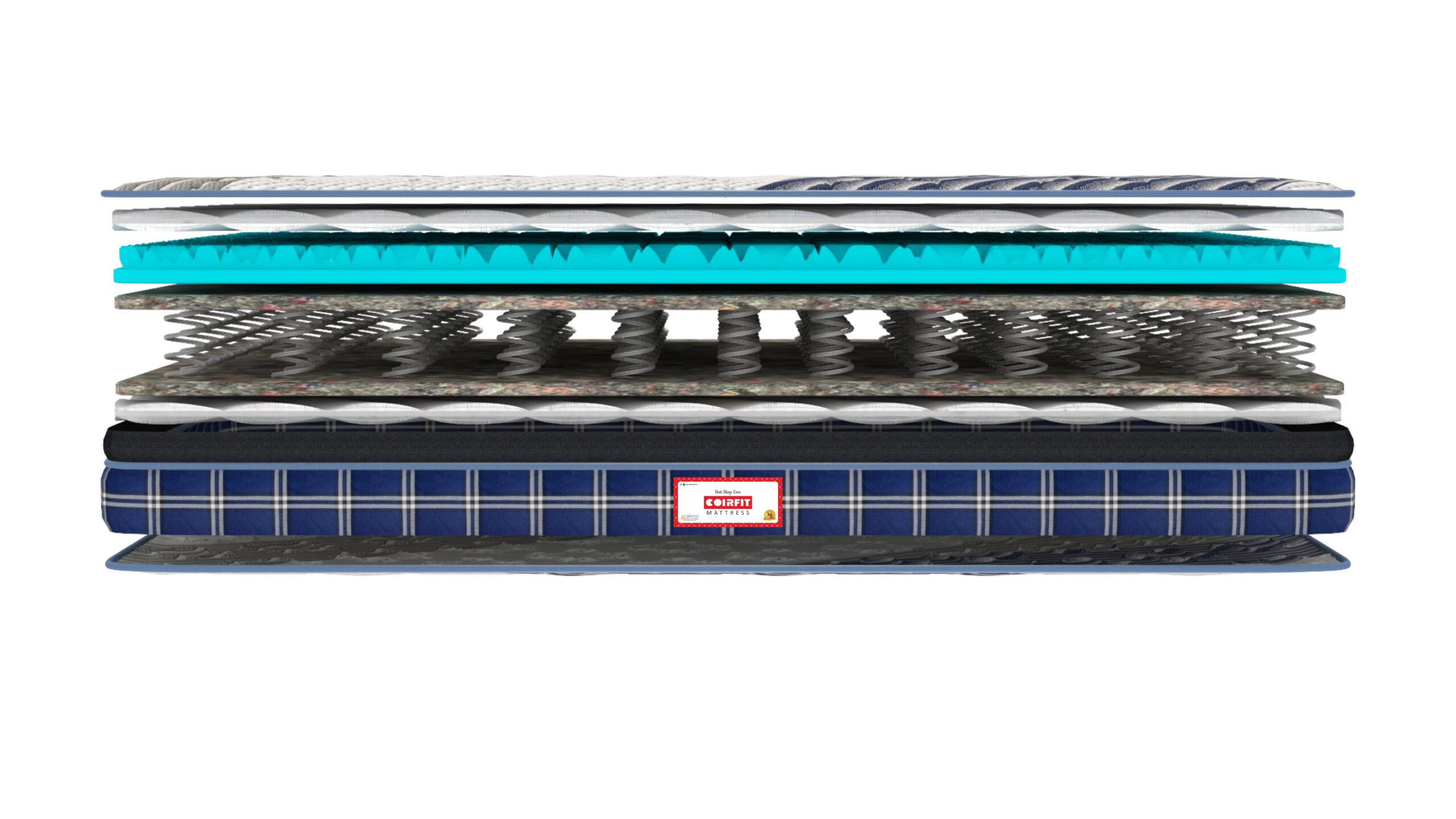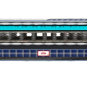 High GSM Quilted Fabric+ Plush PU Foam Quilt+ 3 Zone Pnuematic HR Foam+ Egyptian Felt+ agno Alloy Tempered Bonnell Springs+ Egyptian Felt+ Euro Top Construction+ Premium Knitted Side Fabric+ Non Skid Base Fabric